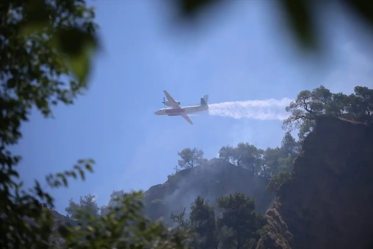 Söndürme çalışmalarına havadan 3 helikopter ve 1 uçak da takviye verdi.