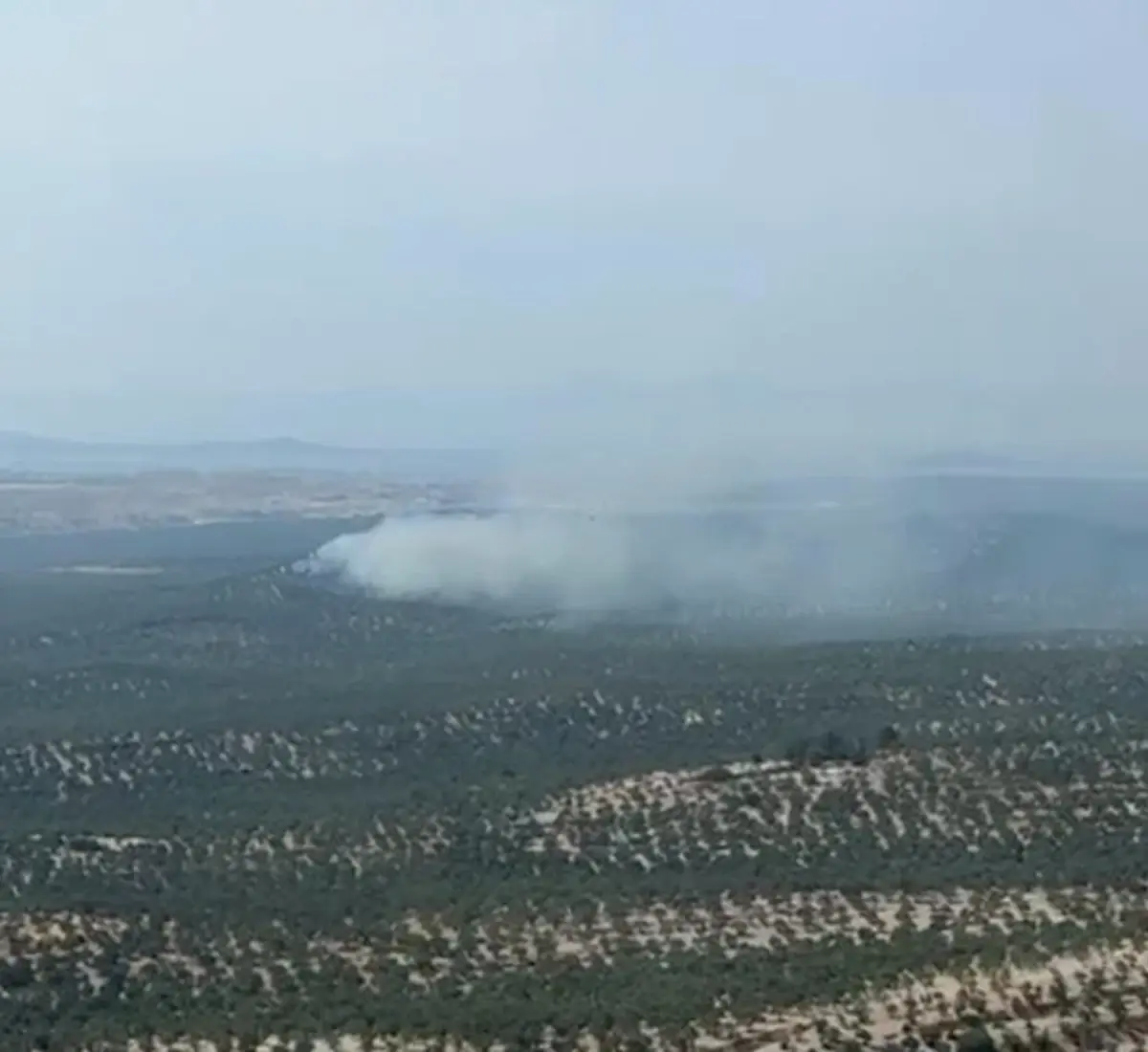 BALIKESİR’in Ayvalık ilçesinde zeytin ağaçlarıyla kaplı tarım toprağında yangın çıktı. Gruplar, yangına karadan ve havadan müdahale ediyor.
