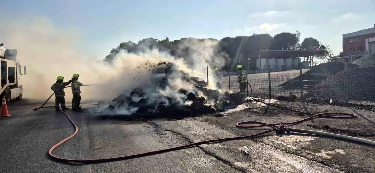 Balıkesir’in Susurluk ilçesinde seyir halindeki saman yüklü bir kamyonette yangın çıktı. Olay yerine sevk edilen itfaiye grupları alevlere müdahale etti.