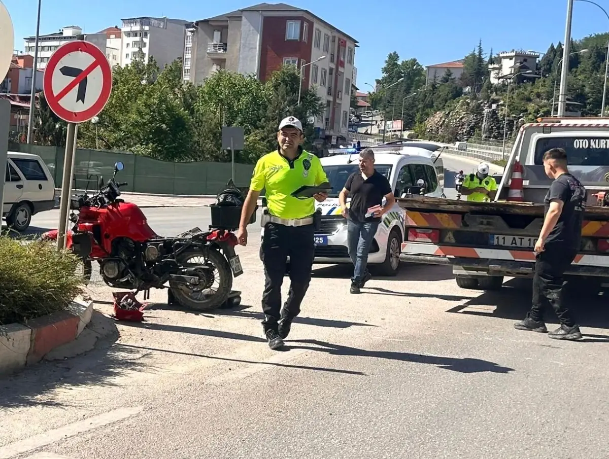Alınan bilgilere nazaran; Bilecik kent merkezinden sanayi istikametine seyir halindeki 11 ACD 400 plakalı motosiklet şoförü Mert K., Tugay 1 Nolu Nizamiye önüne geldiğinde direksiyon hakimiyetini kaybetti. Denetimden çıkan motosiklet orta refüje çarparak devrilirken, şoförü yaralandı. Yaralı şoför Mert K. olay yerine gelen 112 Acil Servis gruplarınca yapılan birinci müdahalenin akabinde Bilecik Eğitim ve Araştırma Hastanesine kaldırıldı.