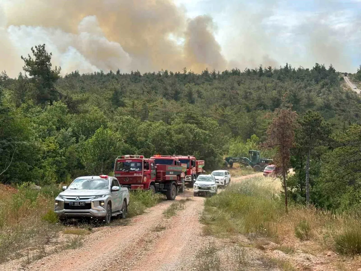 Bilecik’te dün öğlenden sonra Vezirhan beldesine bağlı Zobran köyünde çıkan orman yangını rüzgarın tesiriyle büyüyünce, Kuyubaşı köyünde 25 vatandaş, 35 küçükbaş ve Örenköy’de ise 90 vatandaşın yanı sıra, 60 küçükbaş ve 40 büyükbaş hayvan yerleşimlerden tahliye edilmişti. Alevler sabaha karşı denetimde altına alınırken, soğutma çalışalar devam ediyor. Bölge hem havadan hem de karadan ağır bir formda ablukaya alınırken, alevlerin tekrar çıkmaması için nöbet tutuluyor.