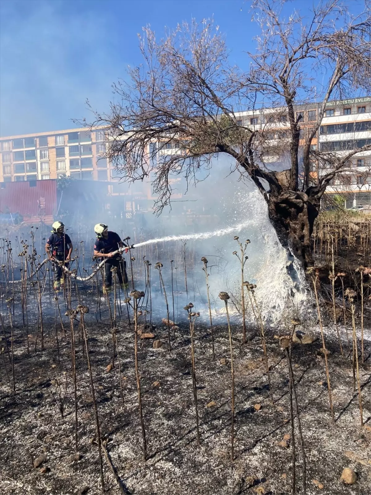 3 arasöz, bir su tankeri ve bir iş makinesi ile yapılan müdahalenin akabinde yangın, denetim altına alındı.