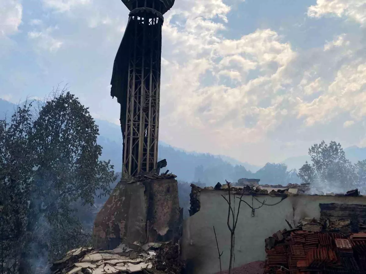 Gölpazarı’na bağlı Köprücek köyünün yüzde 90’ı büsbütün kül olurken, köy mescidinin de için için yandığı görüldü. Köydeki 23 meskenden yalnızca 3’ü ayakta kalırken, 20 konut büsbütün kül oldu. – BİLECİK