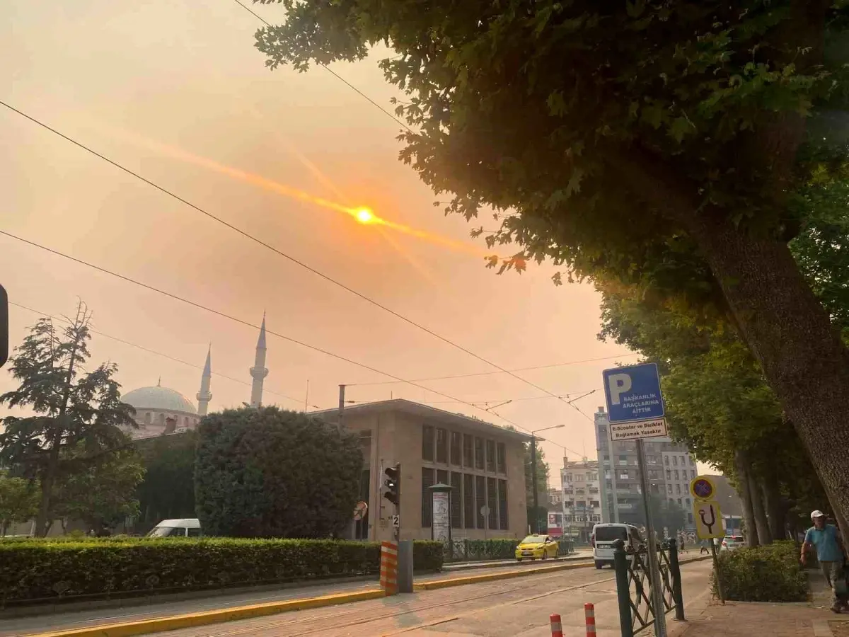 Sakarya‘da çıkan ve Bilecik’e sıçrayan yangının dumanı Eskişehir’e kadar ulaşırken, gökyüzünde oluşan değişik görüntü, yayılan koku vatandaşı telaşlandırdı.