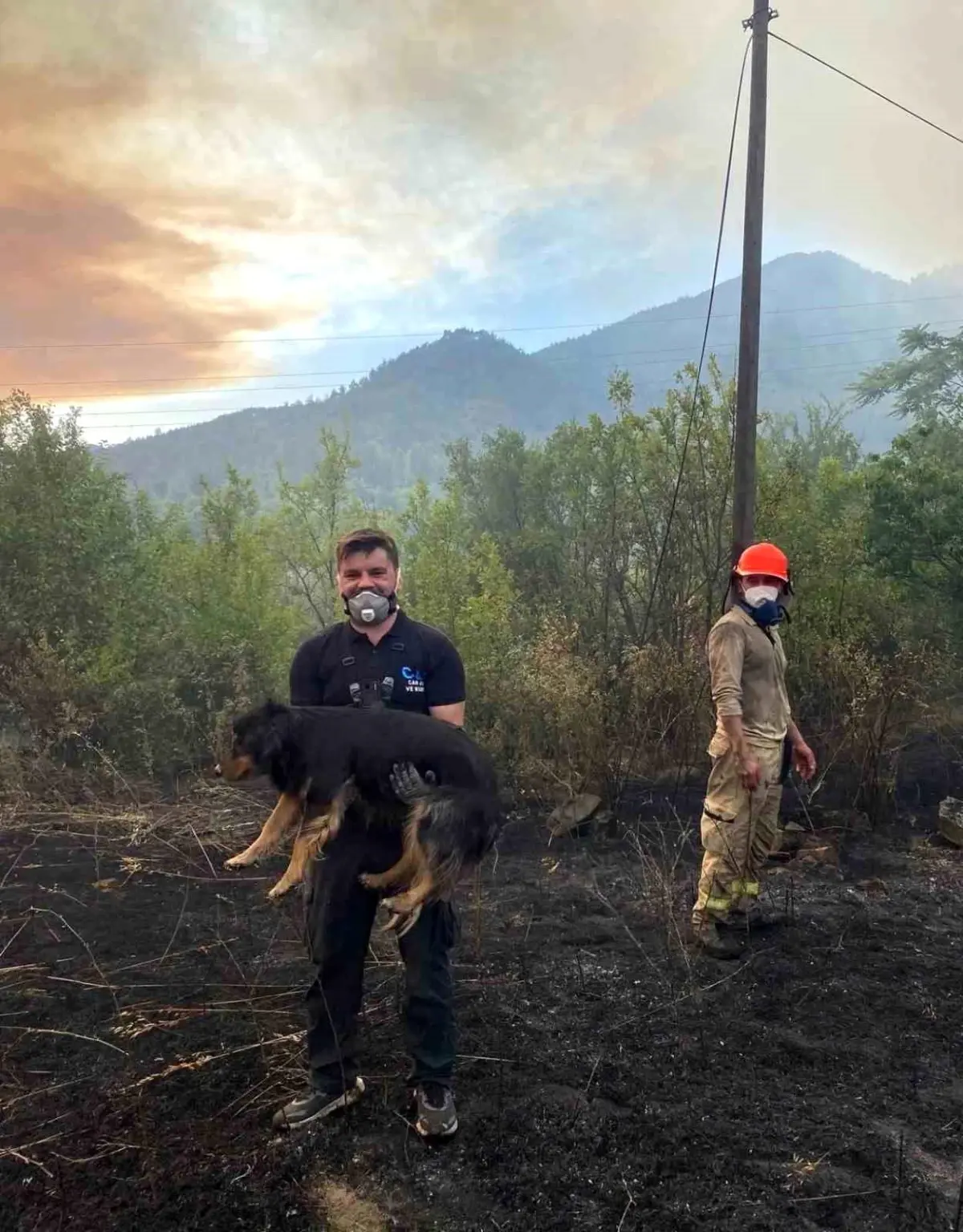 Sakarya’nın Taraklı ilçesinde başlayarak Bilecik hududuna kadar ulaşan geniş çaplı orman yangınında, yürekleri ısıtan bir kurtarma anı kameralara yansıdı. Alevlerin ortasında mahsur kalan bir köpek, yangın bölgesinde vazife yapan arama kurtarma grubu tarafından kurtarıldı.